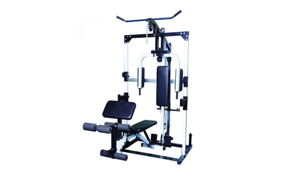 Многофункциональный атлетический центр. Упругие сидения и спинка. Функции: для всех групп мышц: пресс, баттерфляй, сгибание/разгибание ног, парта для бицепсов, верхний блок, машина Смита. Прочная стальная конструкция с сечением 50х50 и ударопрочным покрытием. Свободные веса. Вес: 96 кг. Габариты: 160х145х220 см. Максимальный вес пользователя - 250кг.